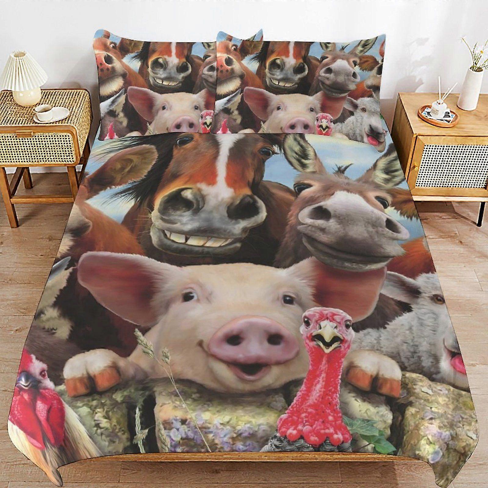 d394 Happy Farm Simple Smooth Finish Practical Zipper Closure Soft Bedding Duvet Cover Sets Sleep Essentials b394