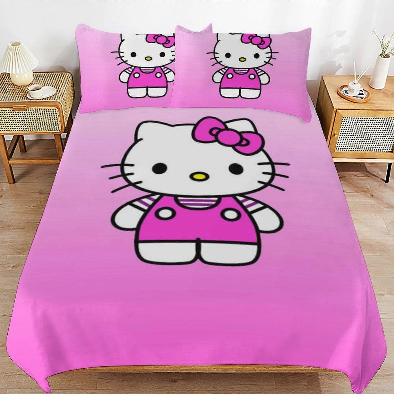 u644 Hello Kitty Quality Weave Breathable Surface Soft Finish Durable Zipper Duvet Cover Sets for Comfort Sleep n644