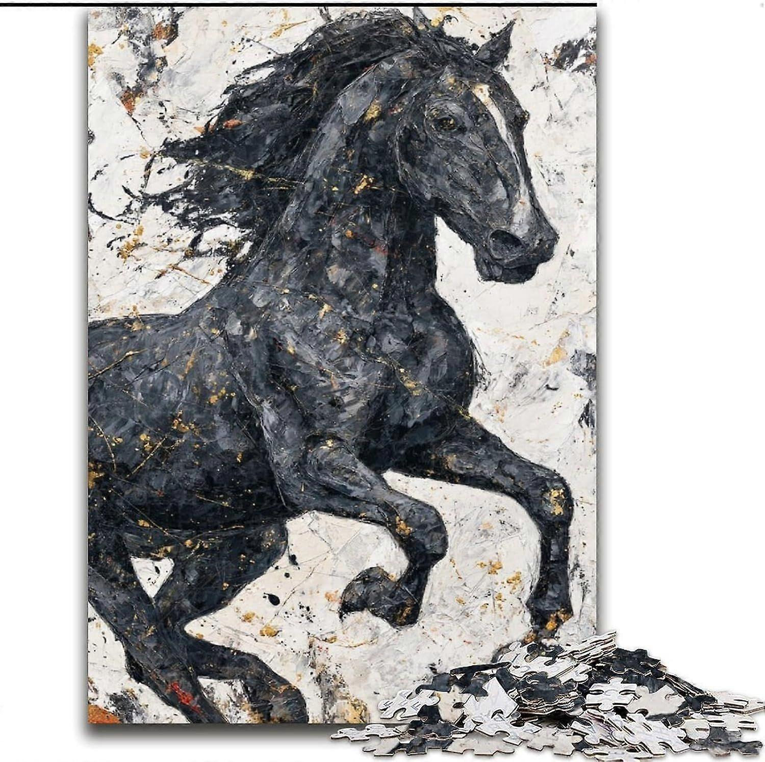 for Adults Black Golden Horse Jigsaw Puzzles for Adults,is Ideal As Gifts for The Whole Family for And Age 14 PT-1867