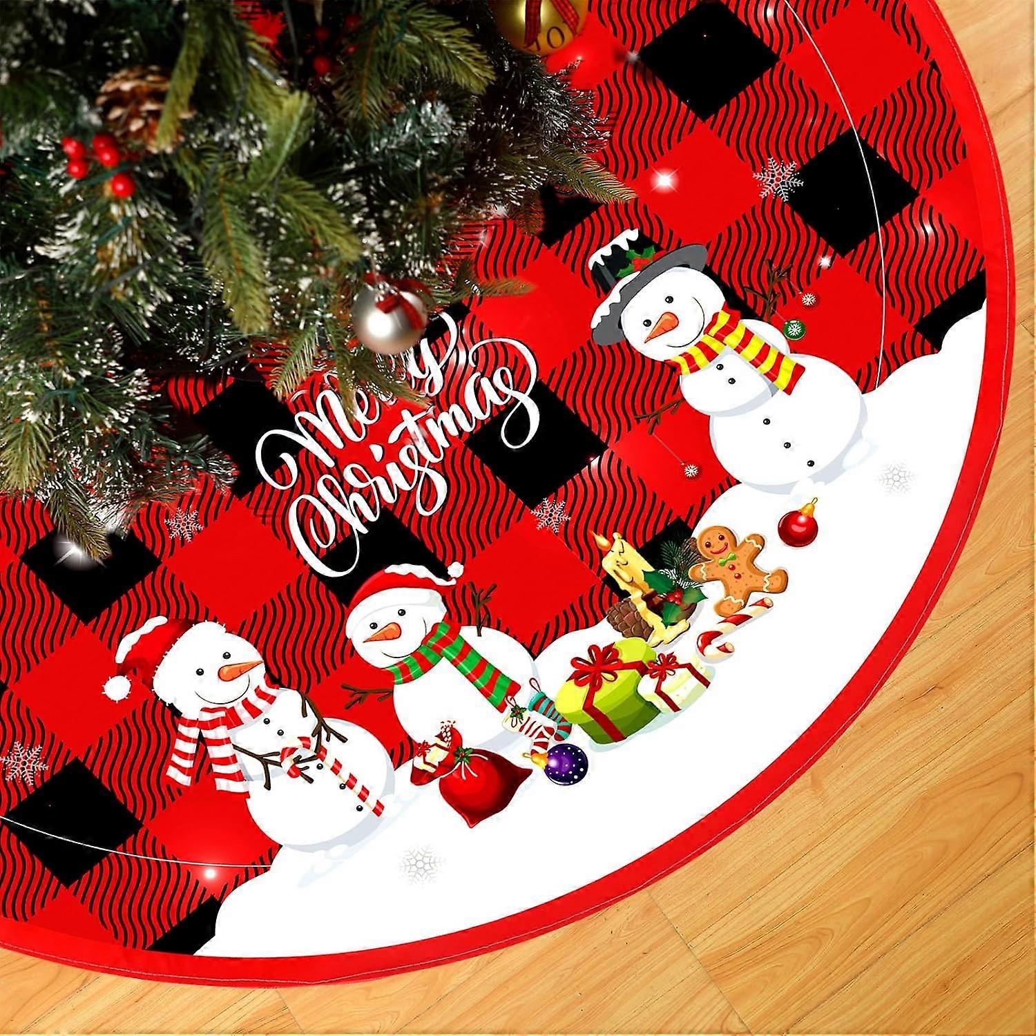 Christmas Tree Skirt Plaid Buffalo Checked Tree Skirt Snowman Mat Decorations Rustic Vintage Farmhouse Christmas
