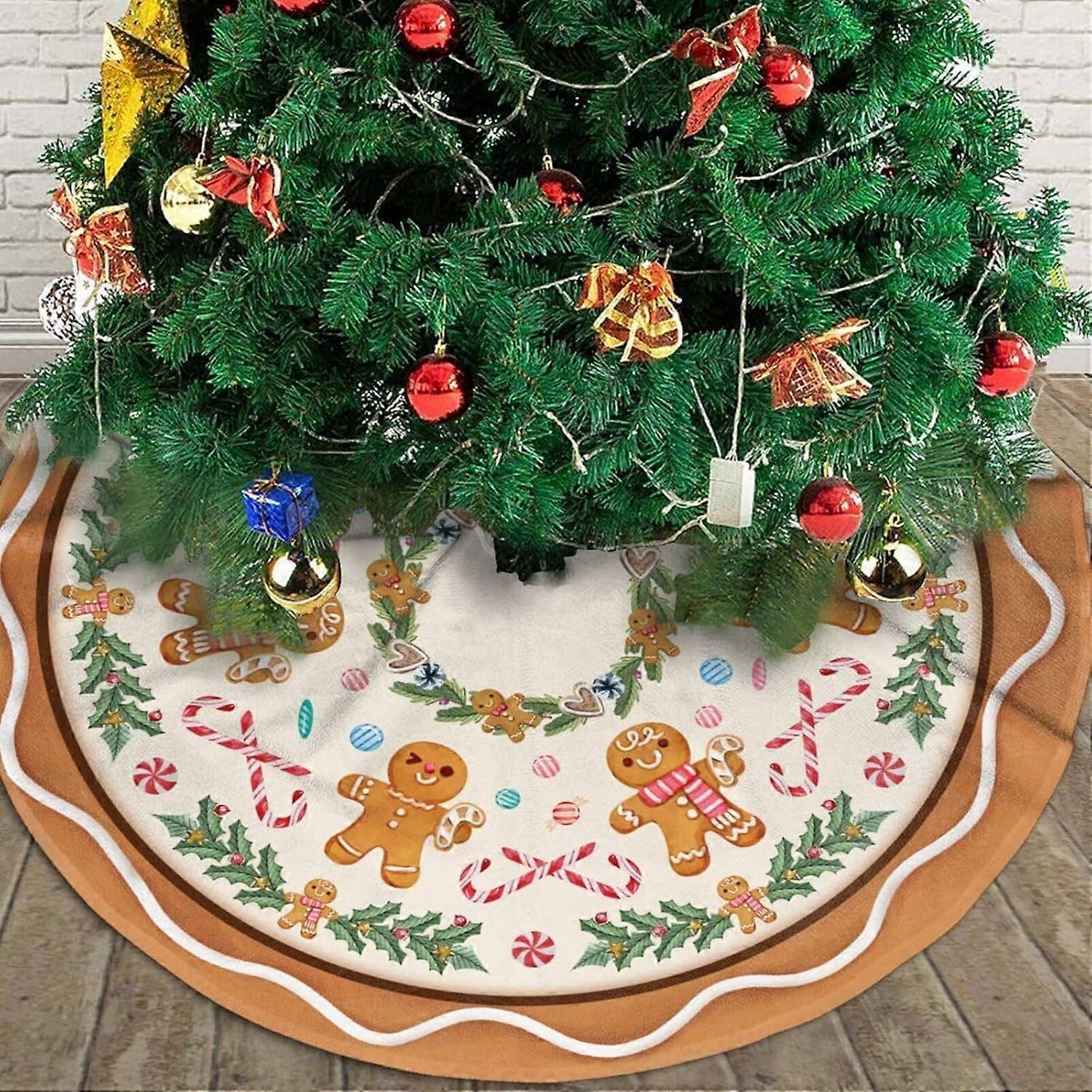 Gingerbread Man Christmas Tree Skirt Indoor Outdoor Holiday Decoration Christmas Tree Skirt Mat Party Decoration Supplies