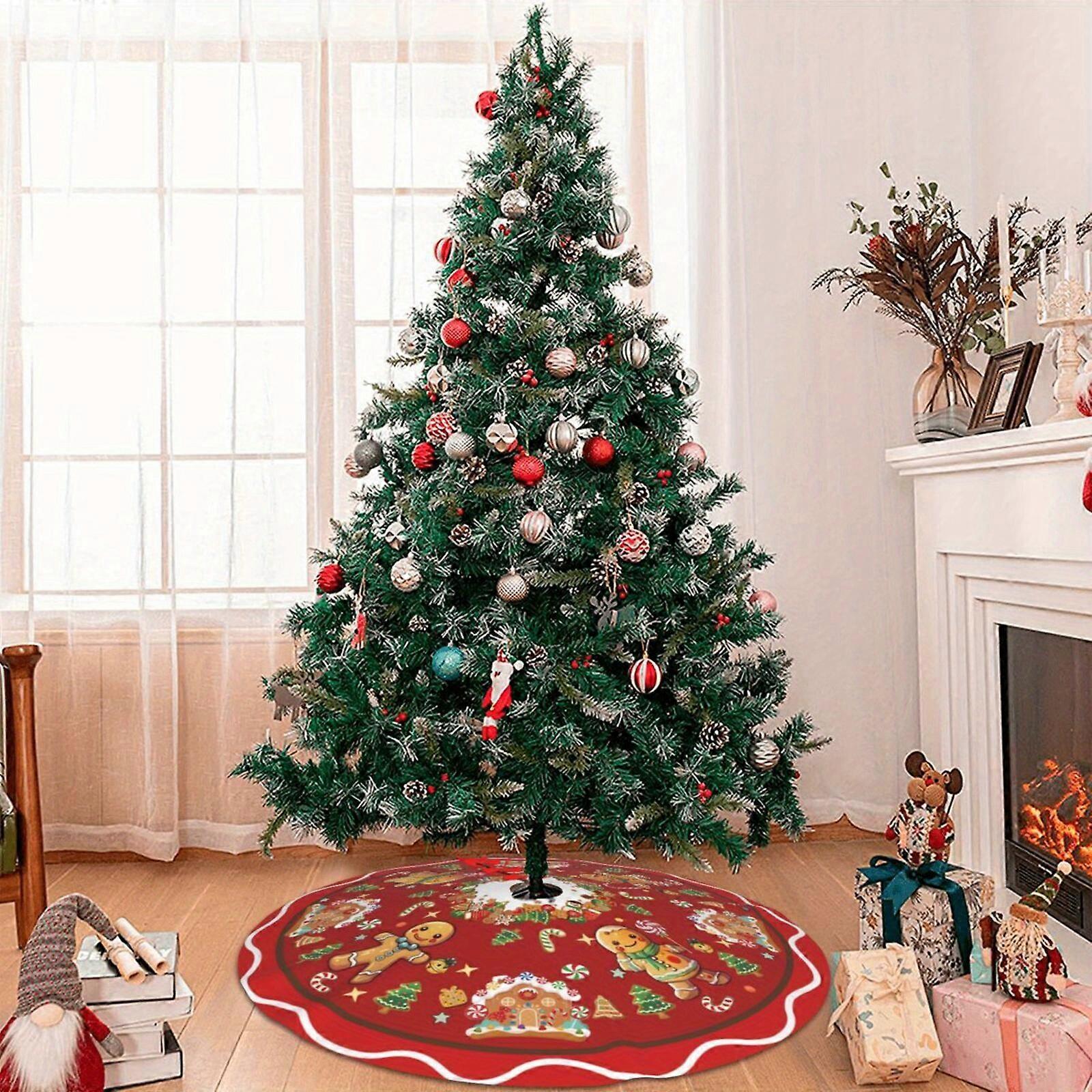 Christmas Gingerbread Tree Skirt Gingerbread House Tree Skirt Ornaments Christmas Tree Mat for Winter Holiday Home Party