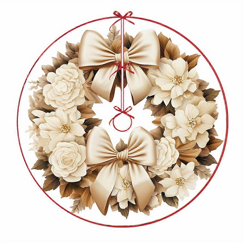 Elegant Floral Wreath Christmas Tree Skirt Cream Rose Gold Bow Design Holiday Home Decor & Celebration Essentials