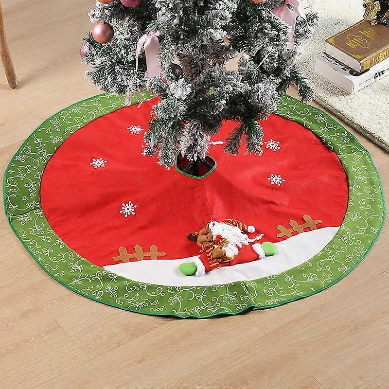 Christmas Tree Skirt, Christmas Tree Mat, Snowman and Santa Claus Design, Large Festive Decorative Round Floor Mat