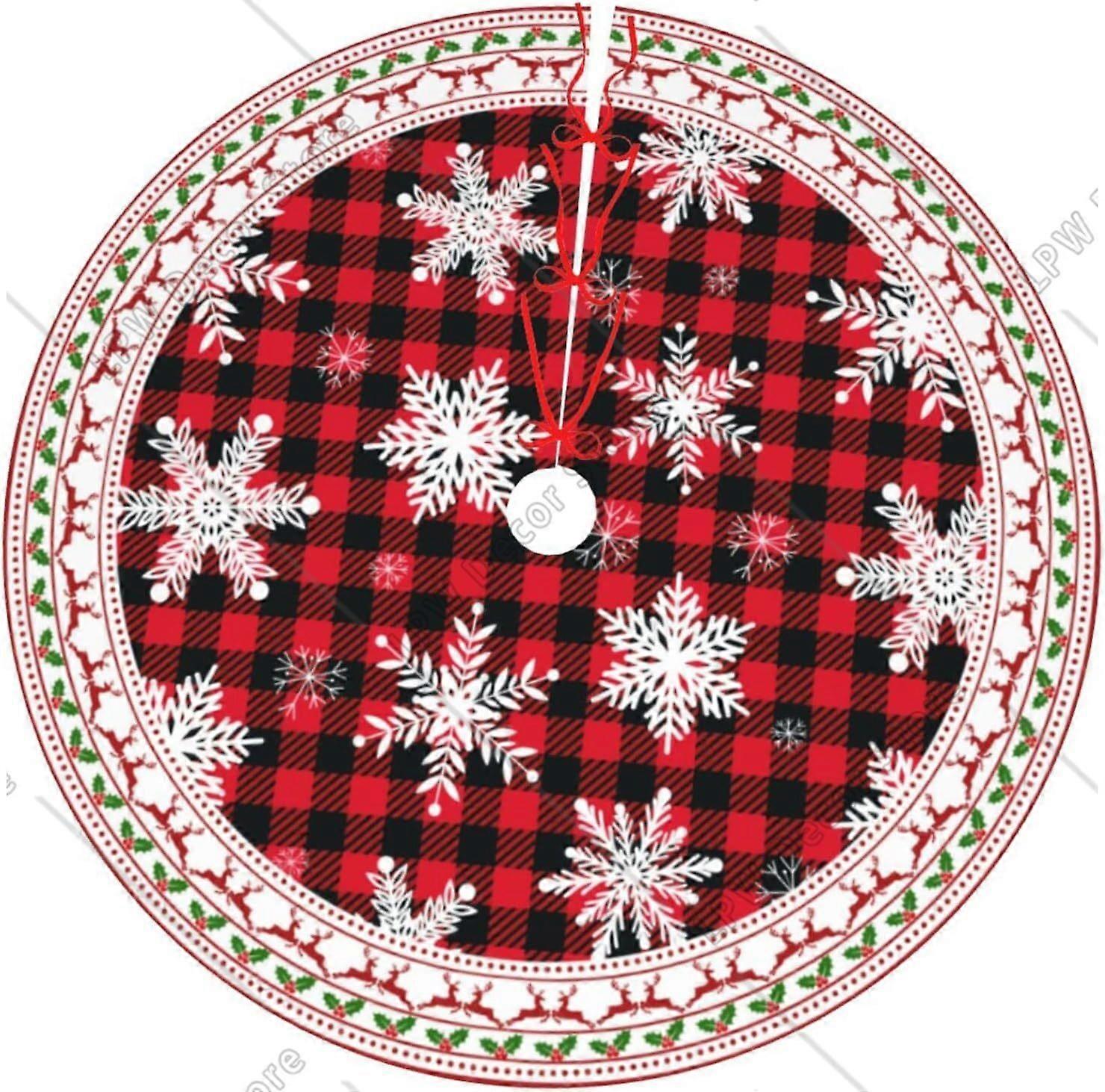 Christmas Buffalo Snowflakes Reindeer Christmas Tree Skirt for Xmas Halloween Holiday New Year Party Circle Tree Mat Decor