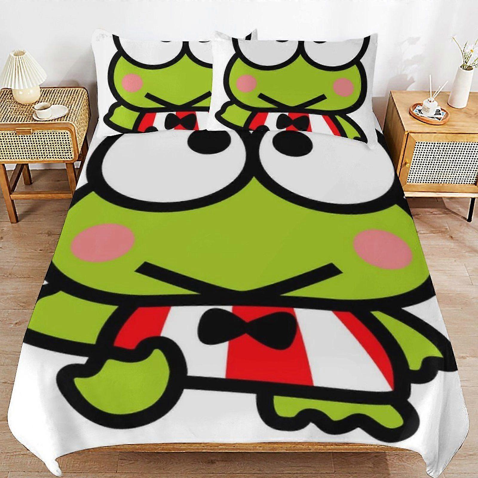w340 Kerokero Keroppi Machine Wash Safe Practical Zipper Soft Touch Quality Fabric Duvet Cover Sets for Comfortable Sleep m340