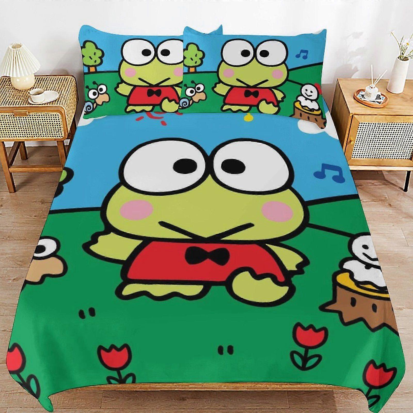 w273 Kerokero Keroppi Tidy Stitch Line Comfort Zip Reliable Surface Feel Duvet Cover Sets for Relaxation m273