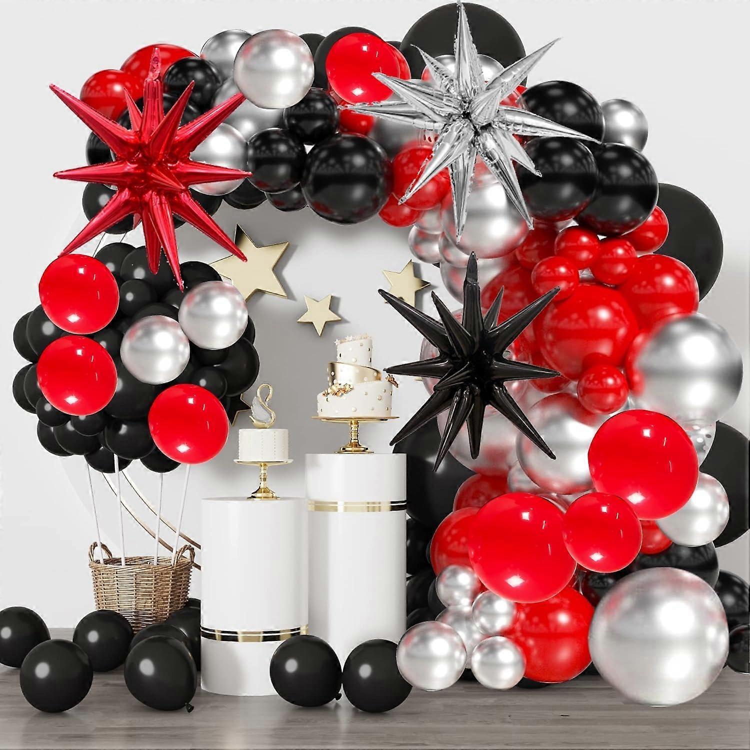 100Pcs Black Red Silver Balloon Arch Kit,for Student Birthday Party Graduation Wedding Bridal Shower Christmas New Year Decor