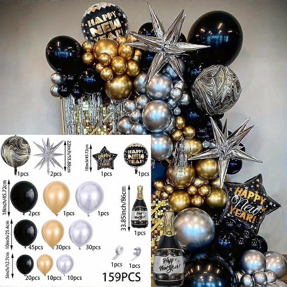 159PCS Black Gold Silver Balloon Arch Garland Kit, New Year's Eve Party, Birthday, Anniversary, Graduation Party Decoration