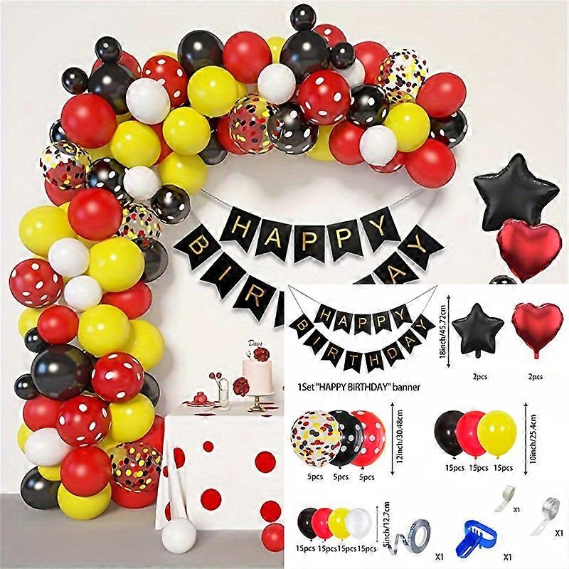 129pcs Cartoon Mouse Balloon Set Mouse Theme Birthday Decoration Black, Red, Yellow Aluminum Foil Birthday Party Decoration