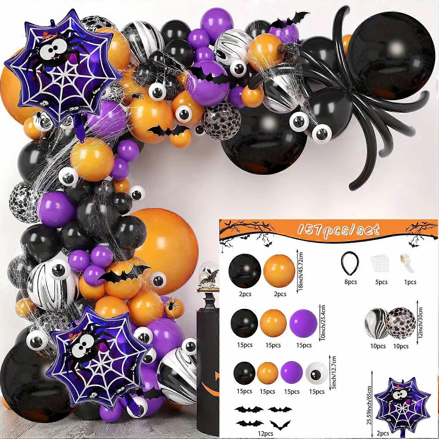 157pcs Scary Atmosphere Themed Balloon Wreath Kit Diy Spider Purple Spider Web Aluminum Film Balloon Halloween Party Decoration