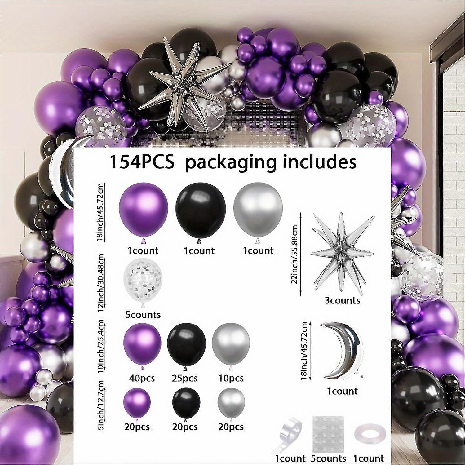 154Pcs Metal Purple Balloon Arch Kit Silver Moon Balloon Birthday Party Anniversary Engagement Graduation Ceremony Decoration