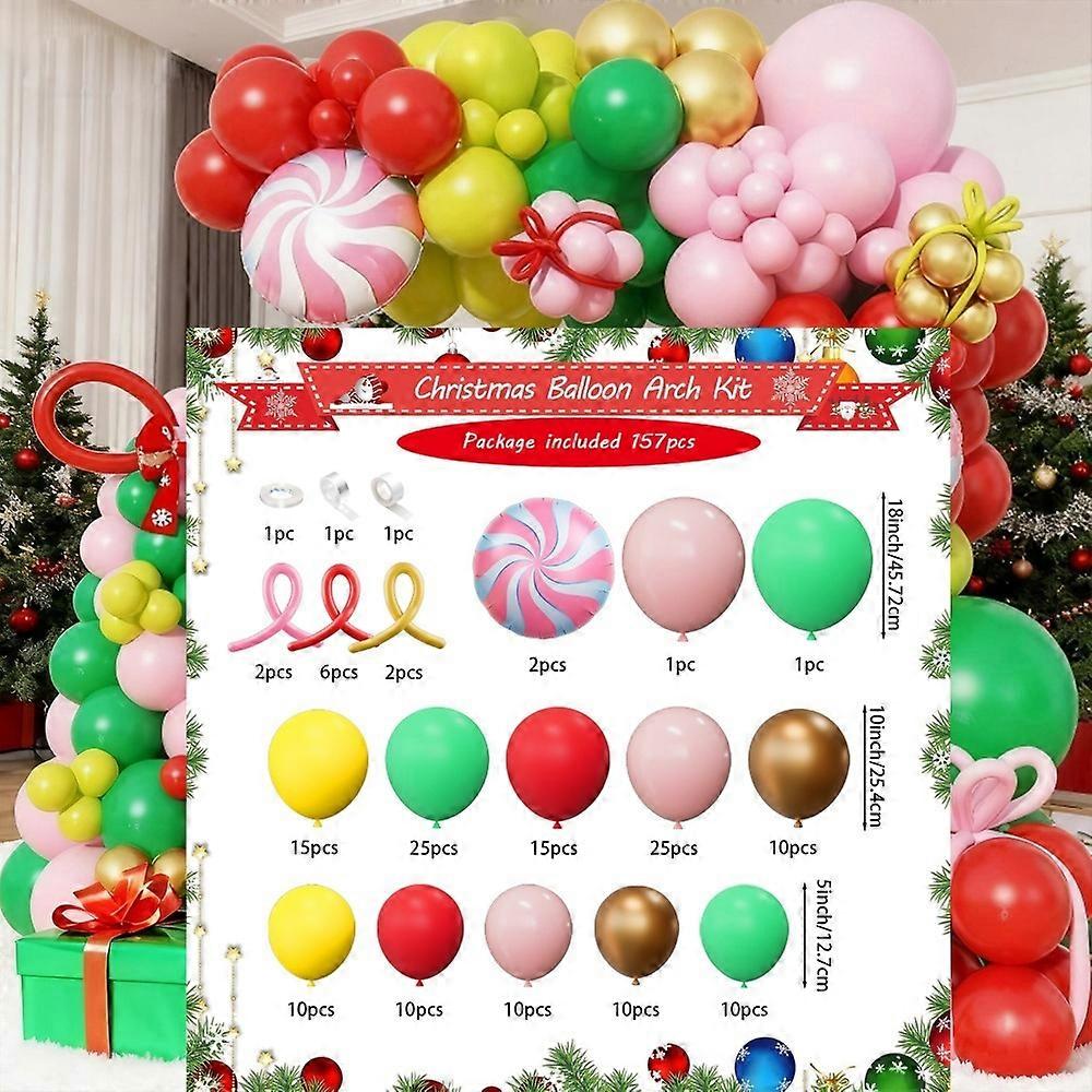 157Pcs Christmas Balloon Arch Wreath Set with Candy Foil Balloons for Christmas Birthday Winter and New Year Party Decorations