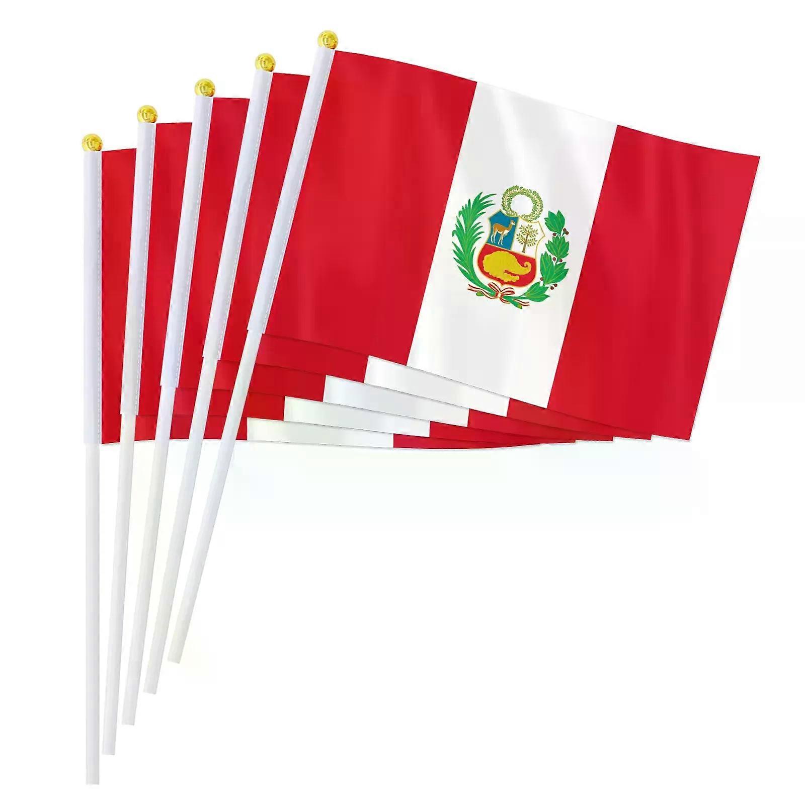 Peru Hand Flag 14 * 21cm plastic flagpole used for waving flags during holiday decoration activities