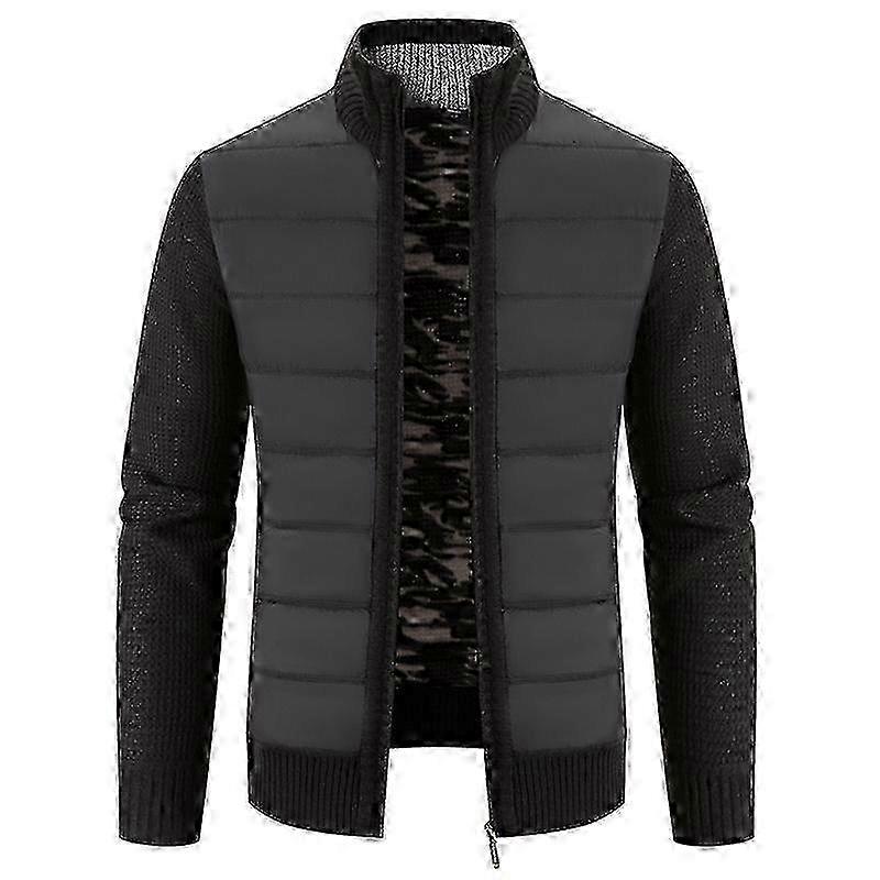 Winter Men Coat Knit Plush Contrast Colors Patchwork Breathable Thicken Long Sleeves Stand Collar Warm Autumn Clothes
