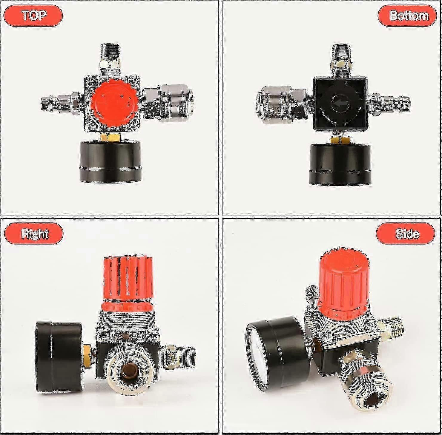 1/4" Compressed Air Pressure Regulator with Gauge, EU Standard 4-Port Design for Industrial Use