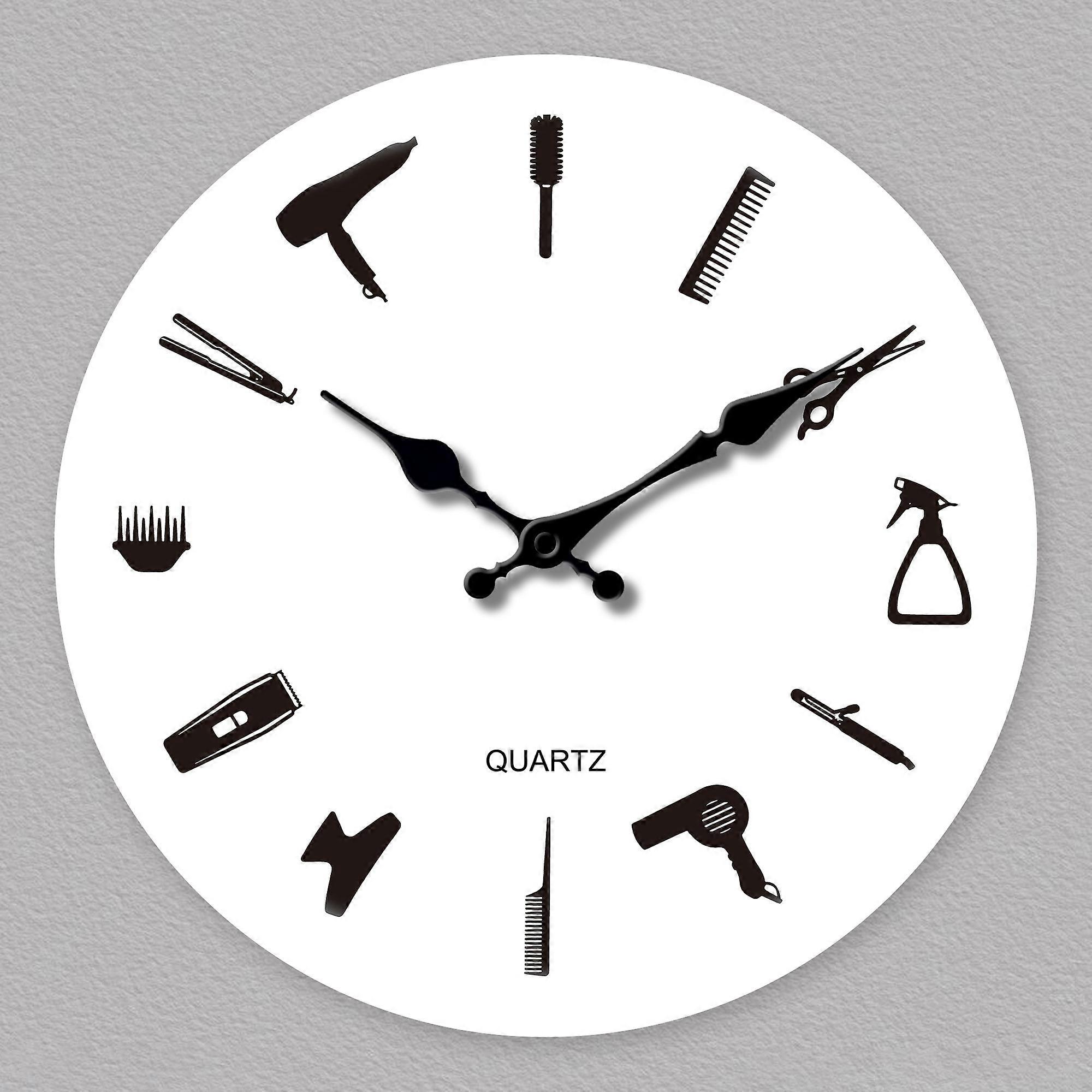 1pc wooden wall clock, hair cutting tool pattern design wall clock, silent wall clock, suitable for living room bedroom, room de