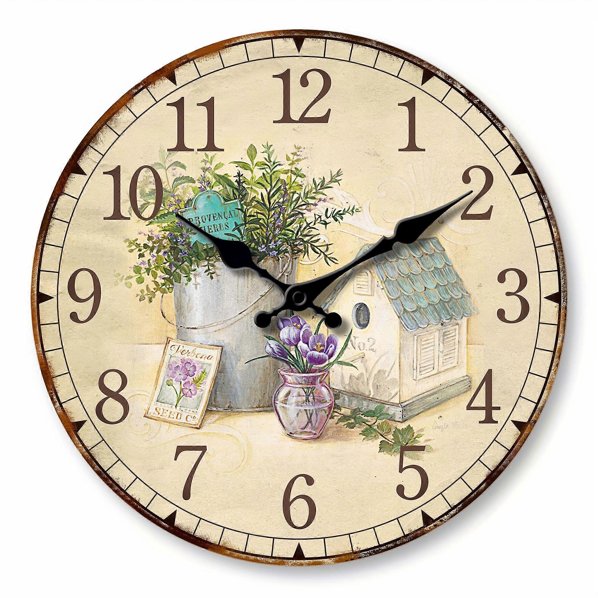 1pc retro wooden wall clock, beautiful lavender-Provence vanilla design wall clock, 10-16 inch mute clock, Home decor, Living Ro