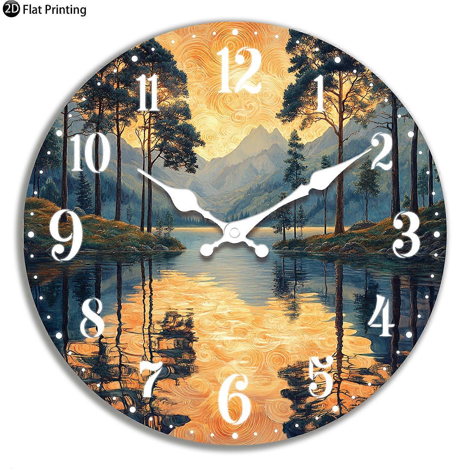 Wooden Silent Wall Clock Sunny mountain landscape Quartz Analog Clock for Farmhouse Office Living Halloween New Year Gift