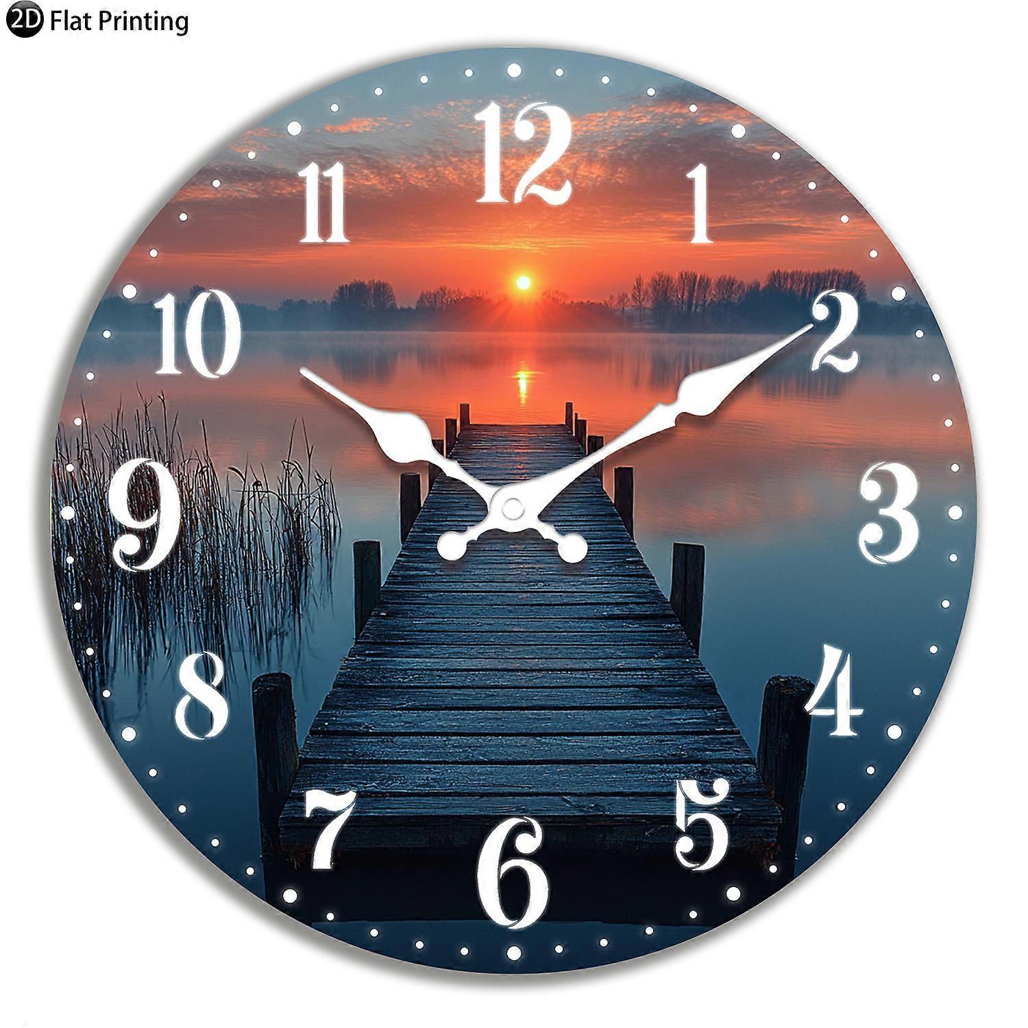 Wooden Silent Wall Clock Sunset over calm lake dock Quartz Analog Clock for Bedroom Bathroom Halloween New Year Gift