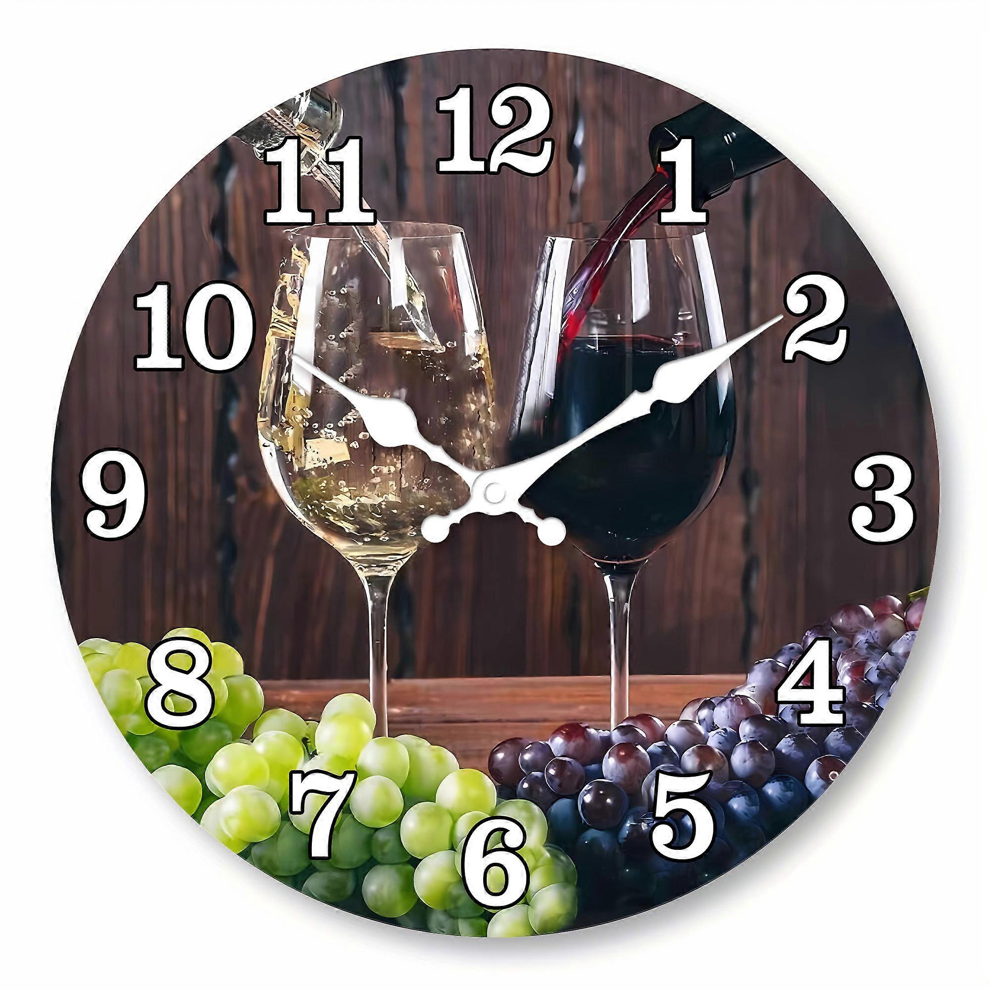 1 10-16 inch wooden wall clock, wine poured into a glass, purple and green grape design wall clock, silent clock, suitable for h