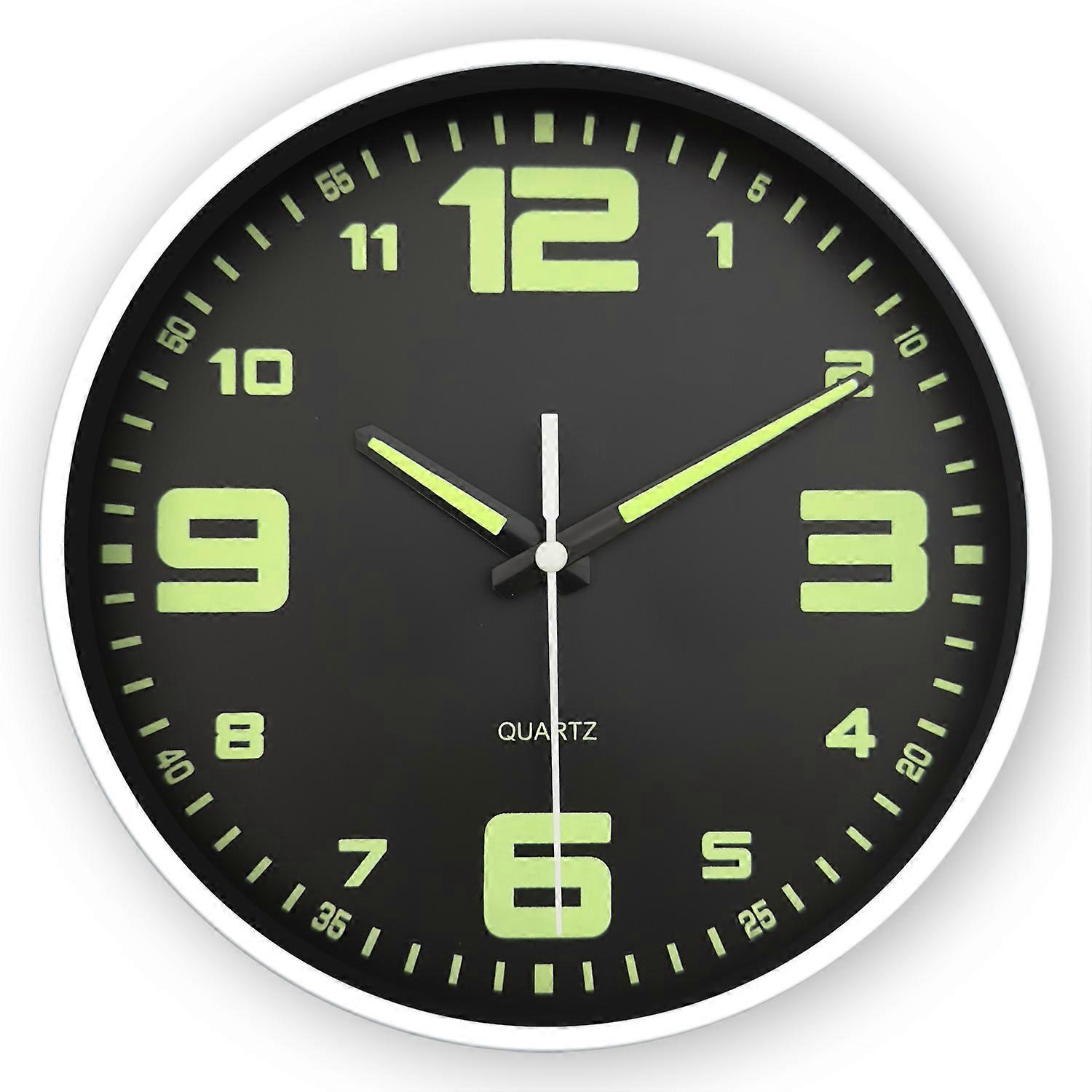 An 8-inch modern black digital hands glow-in-the dark plastic glass clock wall, silent clock, living room bedroom decor