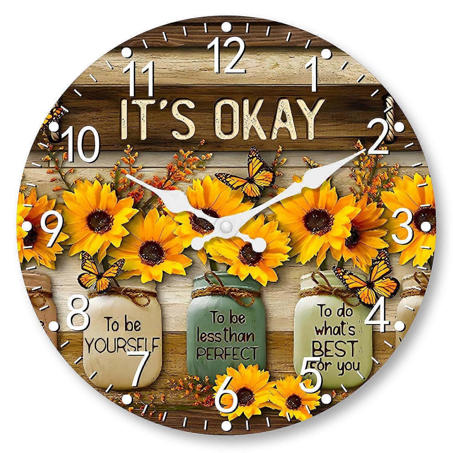 1pc wooden wall clock, sunflower and butterfly design wall clock, home silent clock, living room bedroom study decoration