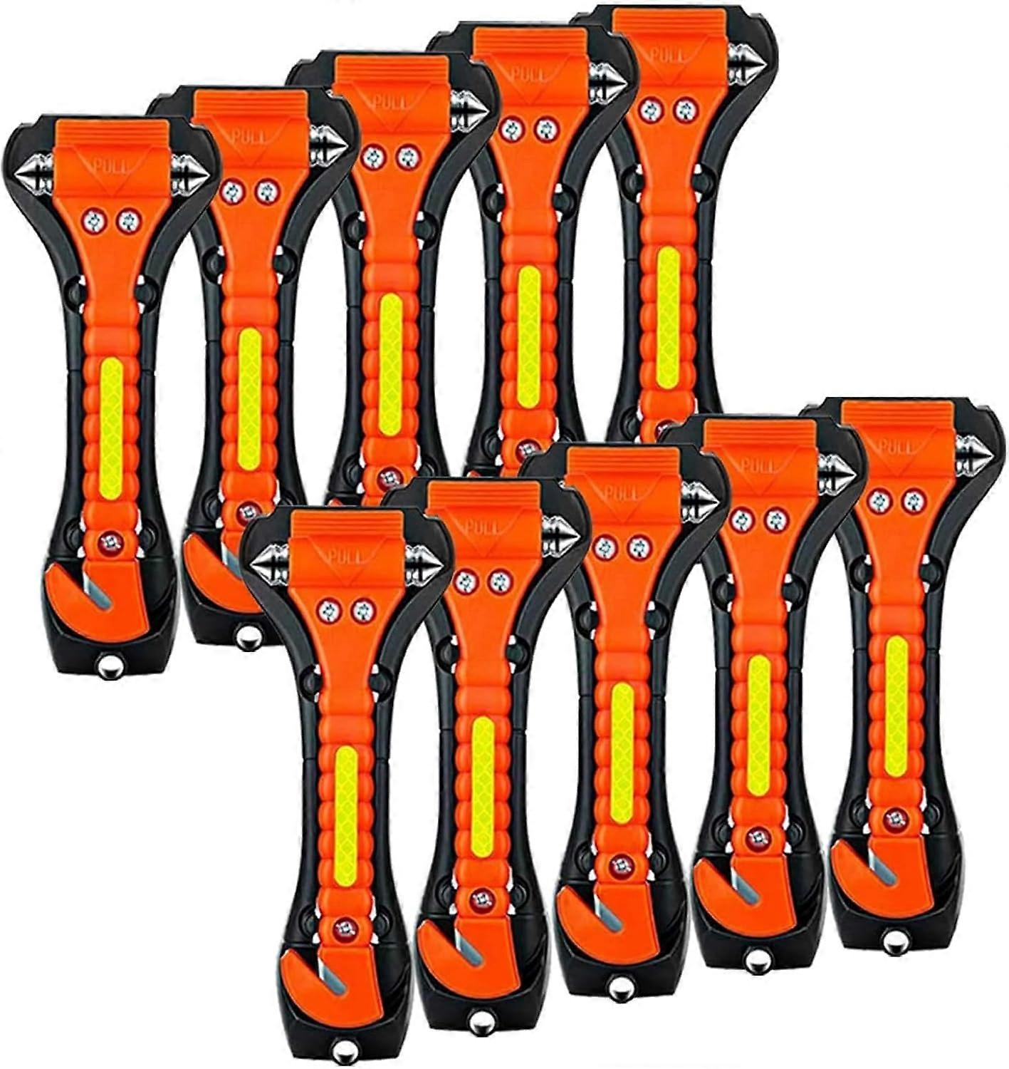 Safety Hammer 10 Pack Car Emergency Escape Tool Car Window Breaker and Seat Belt Cutter with Light Reflective Tape for Family Car Life Saving Surviva