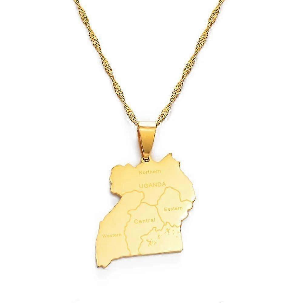 Map of Uganda Map Pendant Necklace Fashion Charm Map Dangle For Women Men Patriotic Jewelry Trendy Party Gift 45cm Yellow