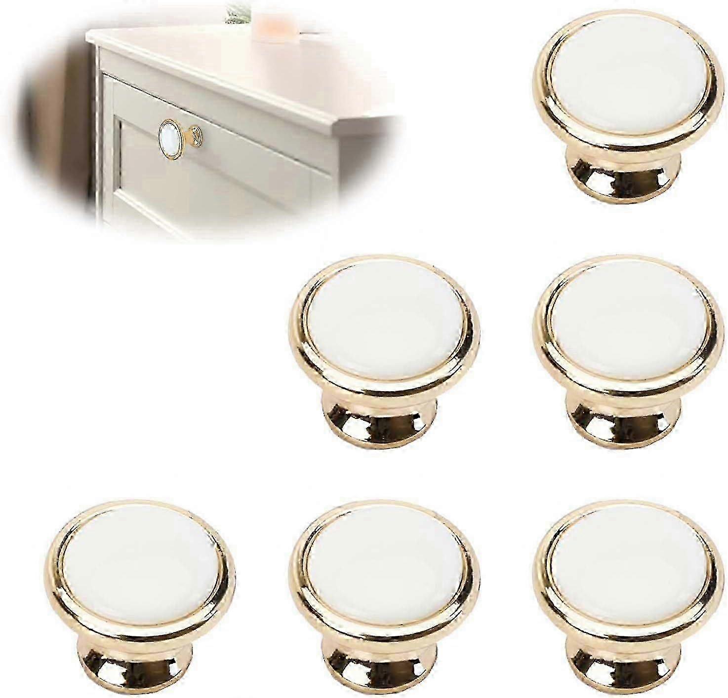 Package List: The package includes 6 pieces of furniture handles with a diameter of 30mm and a height of 30mm, equipped with mounting screws. Please confirm the size before purchasing.Unique Design: Our furniture knobs are shaped like small mushrooms, and the surface is gold and white. The ergonomic design makes it easier to open and pull the cabinet door. This can better reflect the quality of our furniture.High-quality Material: The cabinet door handle is made of high-quality zinc alloy, and the surface adopts electroplating process. More rounded, durable, anti-oxidation and not easy to rust. The gold and white colors are also precise, better quality, and can be used for a long time.Easy to Install: Simply find the location on the board where you want to install it and drill holes. Then pass the provided screw through the back of the plate and tighten it onto the knob. Can be easily installed in furniture.Wide Applicability: These gold cabinet knobs are suitable for most types of cabinets, dressers and drawers. And it can also be used as a hook. Add a touch of gold to our home.