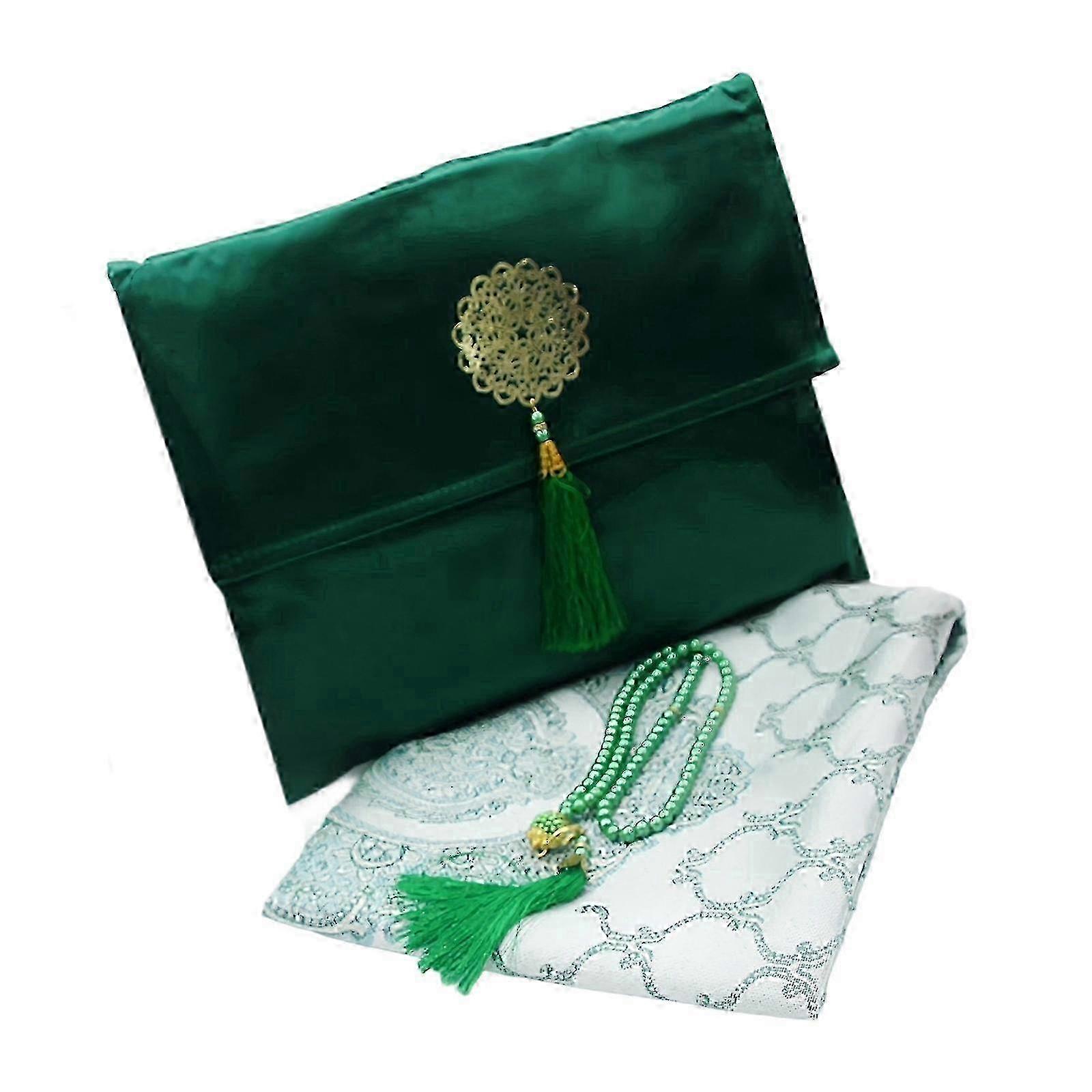 Beautifully Color Prayer Carpet Praying Rug Mat With Beads and Storage Bag Suitable For Women And Men Bayram Gift green