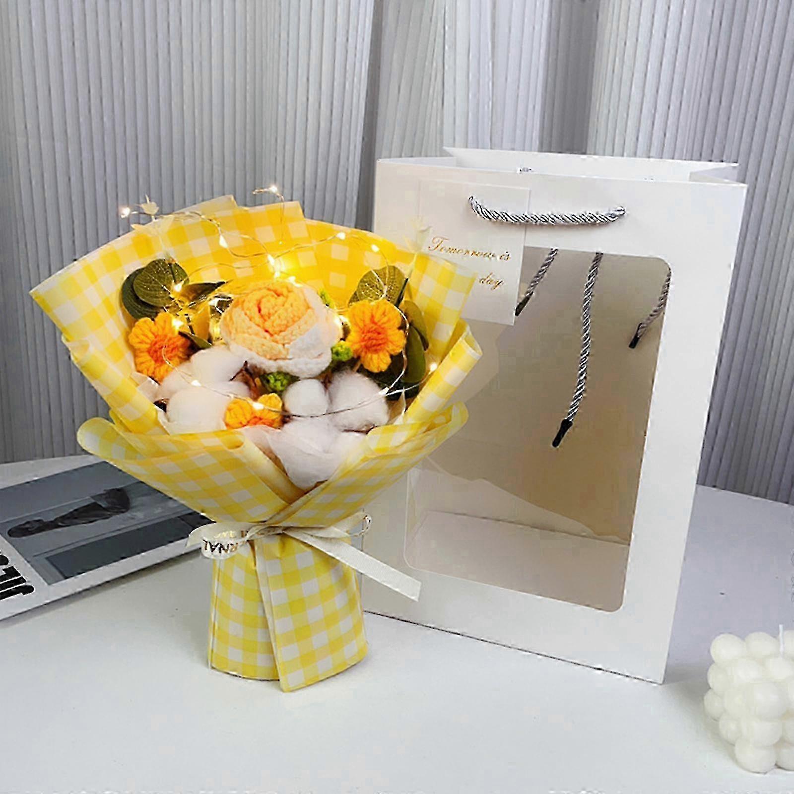 Crochet Flower Bouquet Handwoven Flowers Decorative Ornaments Supplies for Bedroom Bathroom Room Decoration Present Yellow