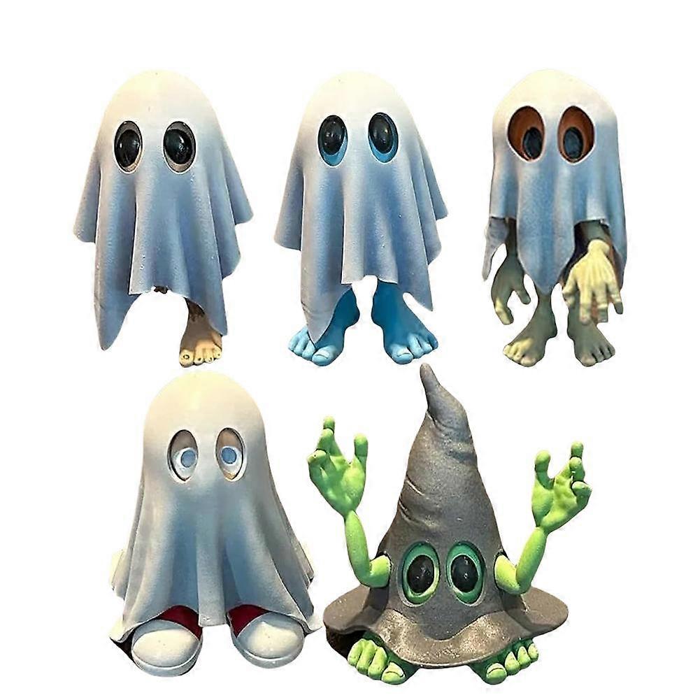 Halloween Ghost Figurines Set Resin Decor With Pumpkin And Hat Spooky Fun Holiday Mantel Shelf Scary Decoration Gift For Fall Party