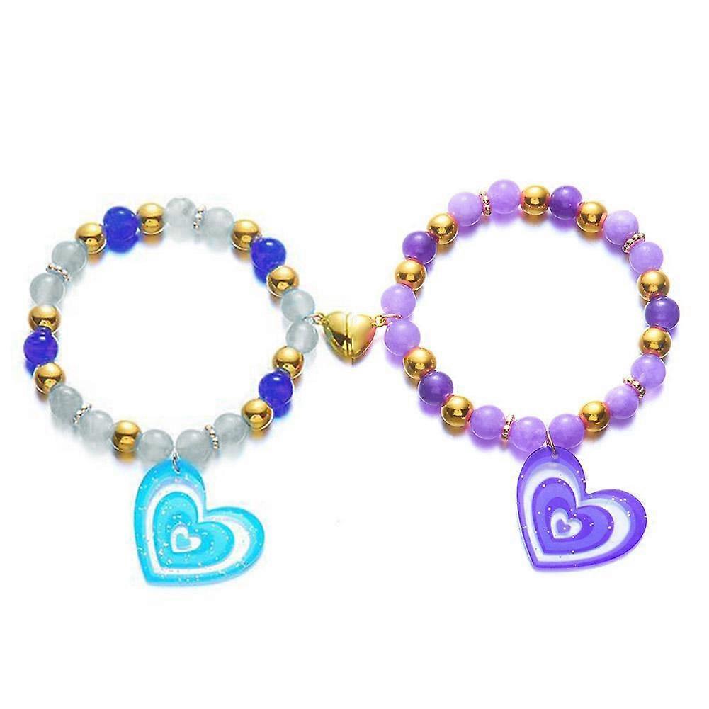 Handmade Friendship Bracelet Set Colorful Resin Glass Beads Heart Design Gift for Couples Friends