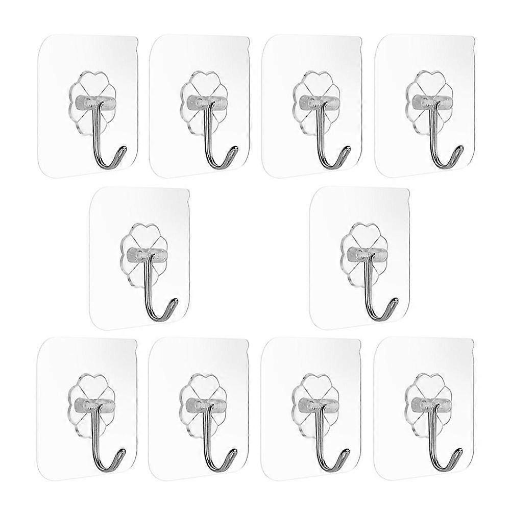 Multipurpose Self Adhesive Wall Hooks 10 Pack Transparent Reusable Heavy Duty for Bathroom Kitchen Office