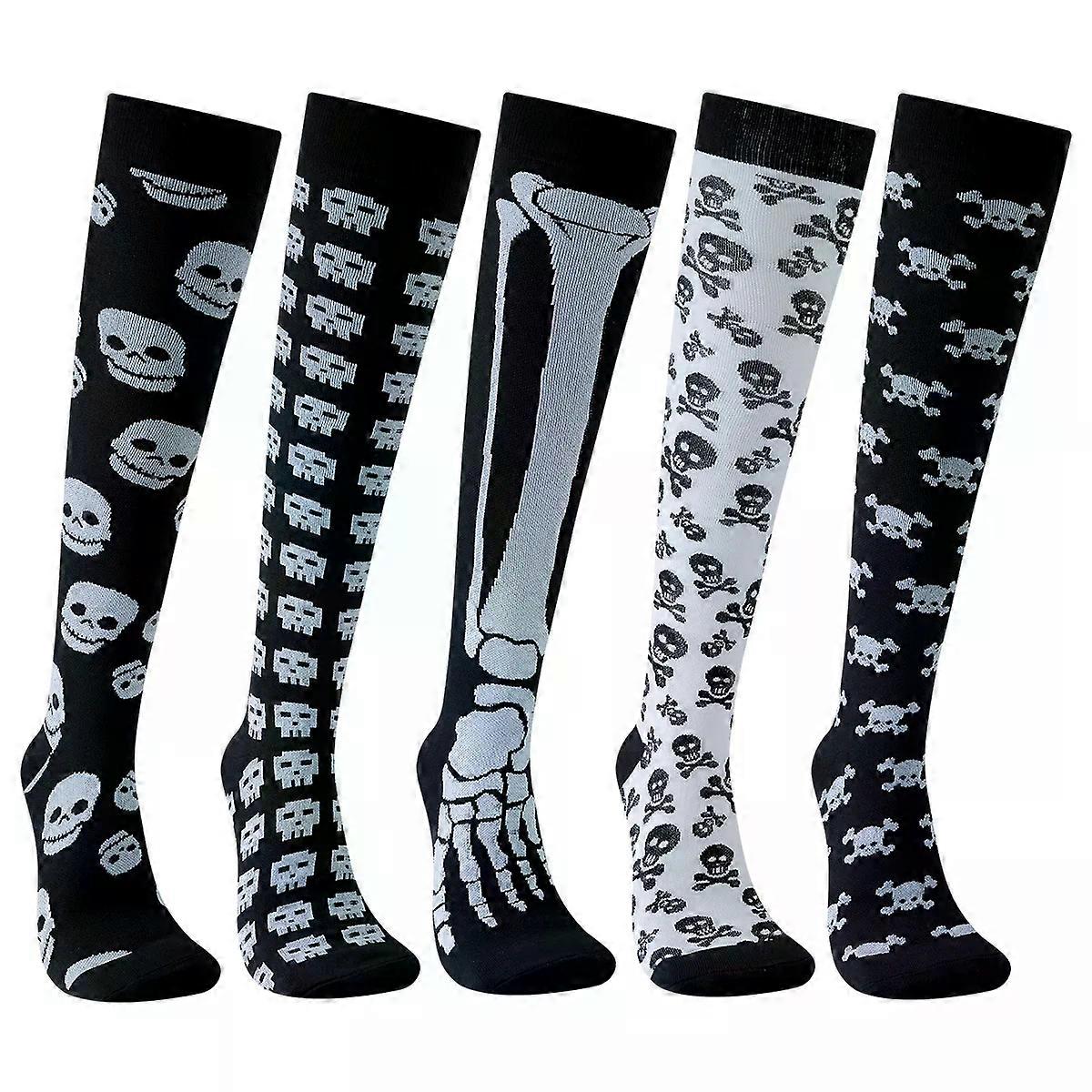 Skull Halloween Compression Socks for Men Women 5 Pairs Running Nurse Compression Socks Nurses Sport Ladies Lady Womens Running