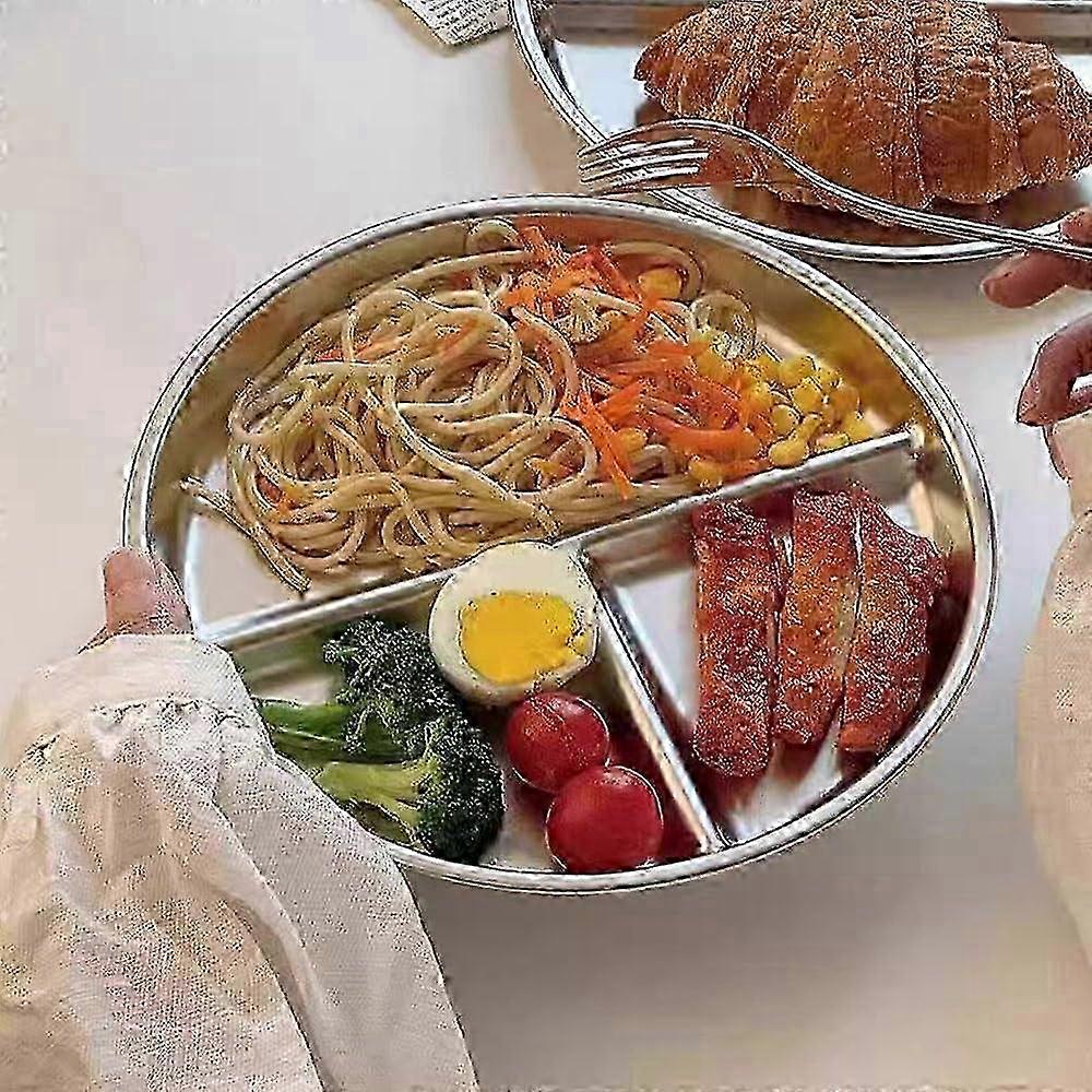New Portion Control Plates for Weight Loss - Stainless Steel, 9 Inch, Ideal for Adults/Diabetics - Divided Metal Plates for Kitchen & Picnic Use