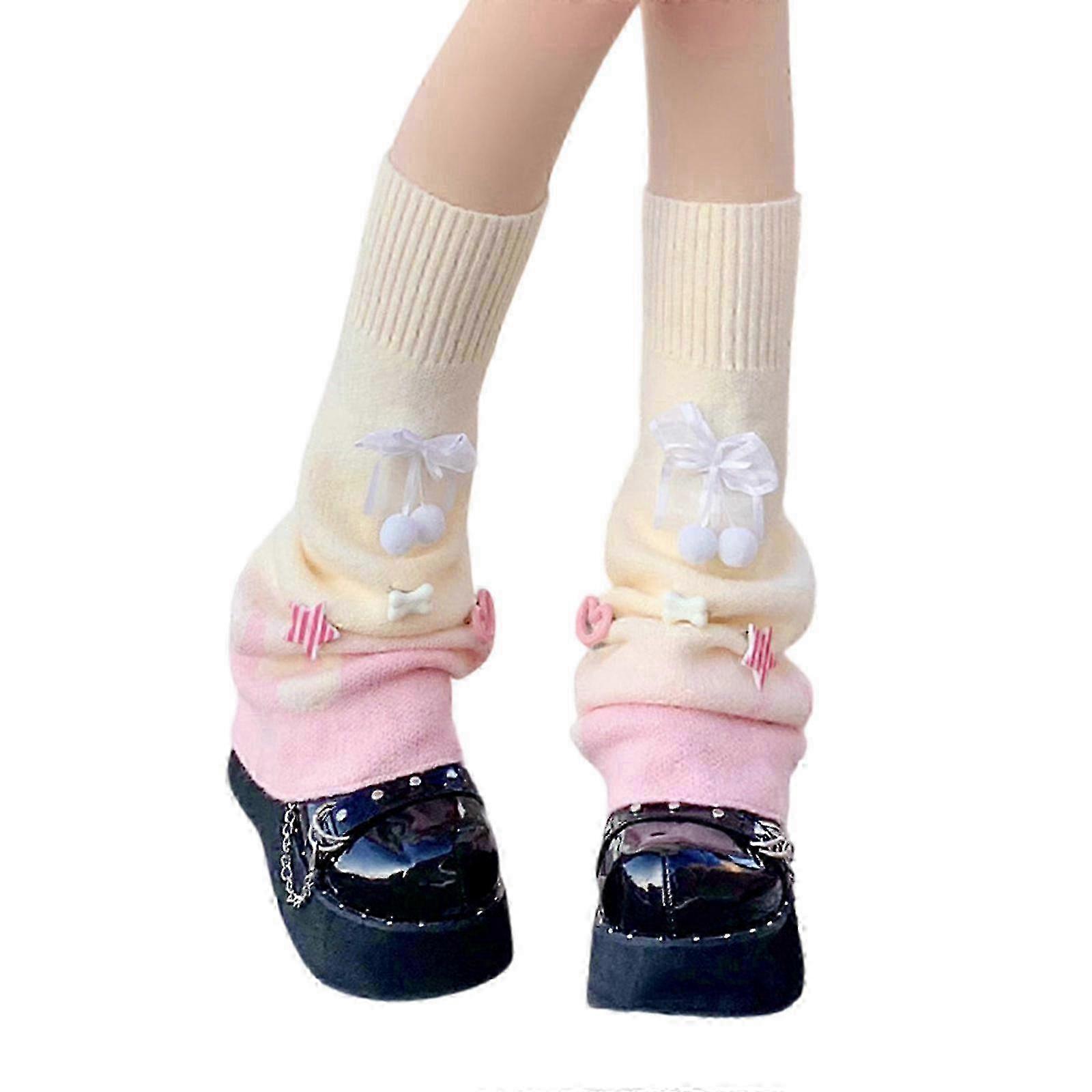 Punk Knitted Leg Warmers with Plush Balls, Bowknot Charms & Baggy Wide Leg Design for Women's Long Socks