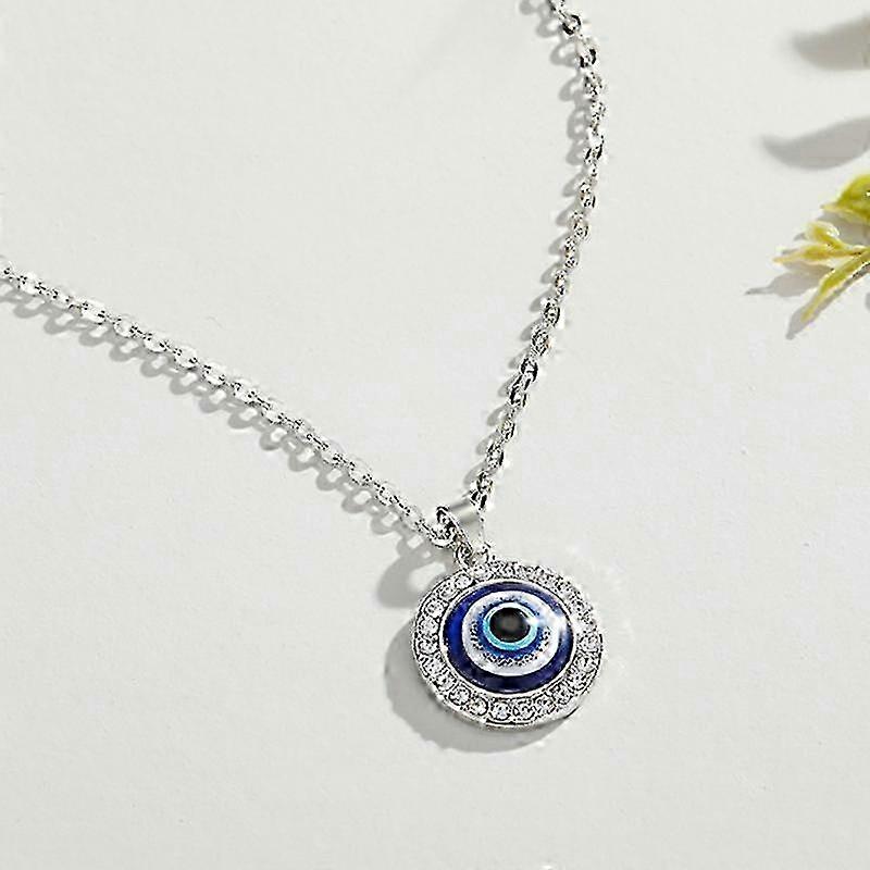 Retro Turkey Evil Eye Blue Resin Necklace with Rhinestone Heart Pendant & Clavicle Chain - Ethnic Lucky Women's Necklace