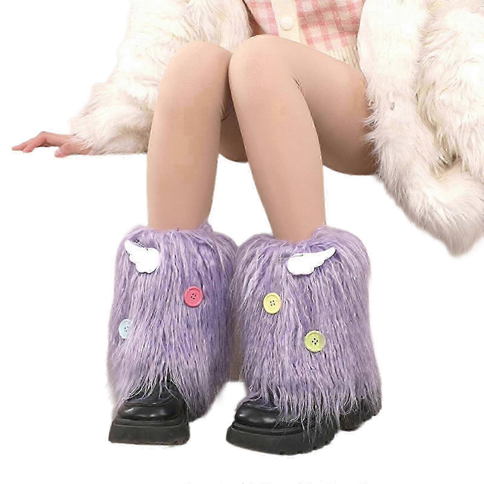 Colorful Button Anime-Style Fuzzy Leg Warmer Boot Cuffs: Japanese Punk Student Furry Leggings Cover