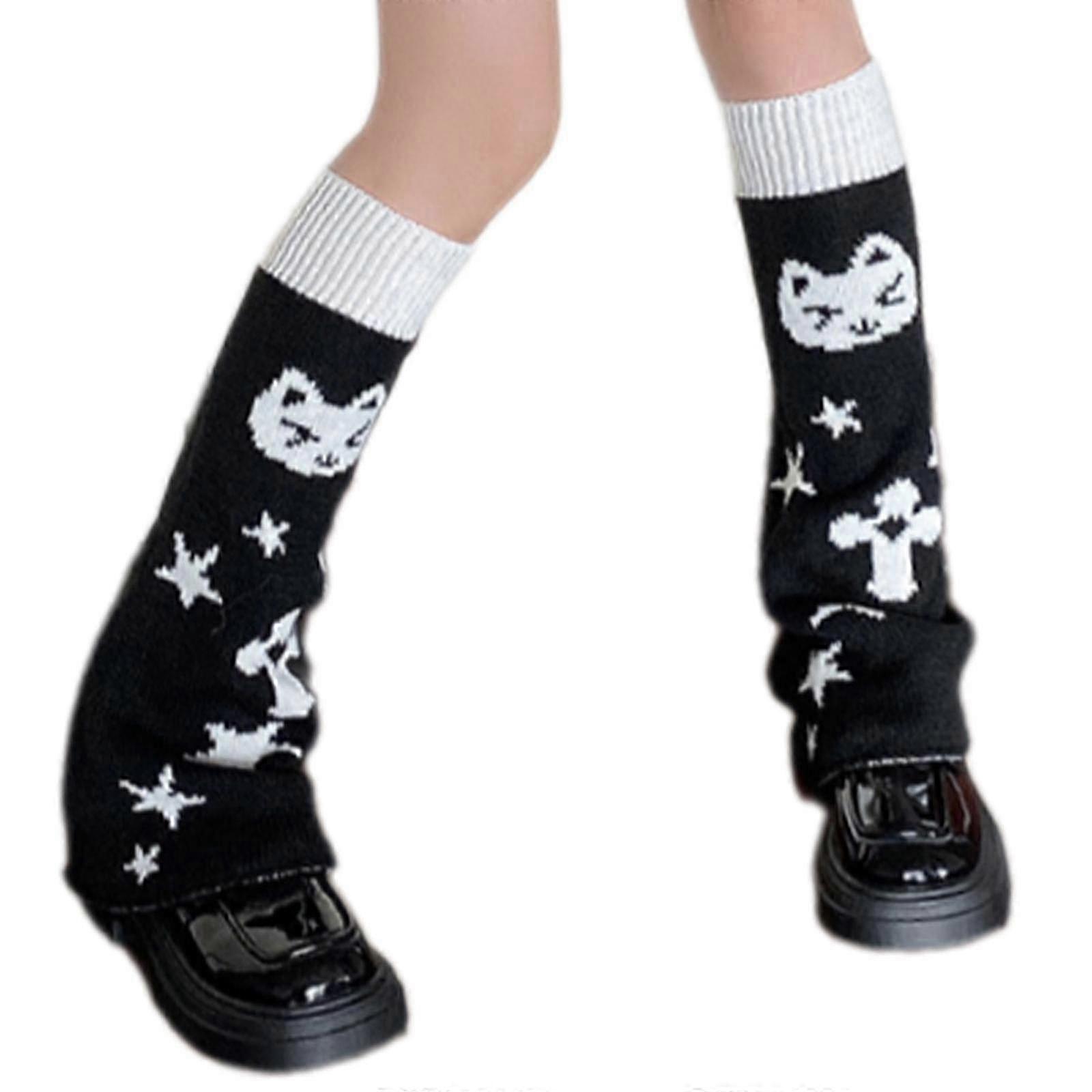 Reversible Cats Spiderweb Pattern Knitted Leg Warmers for Women's Harajuku Style Boot Cuffs
