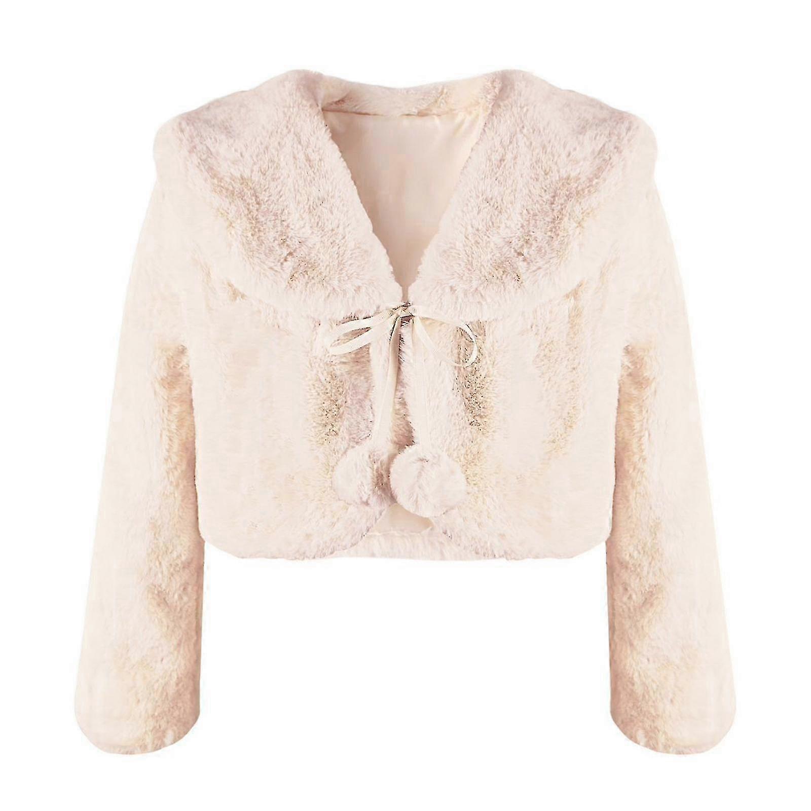 Girls' Faux Fur Dress Coat with Long Sleeves - Elegant Cape for Princesses in Winter, Gray XL, Perfect for Winter Elegances