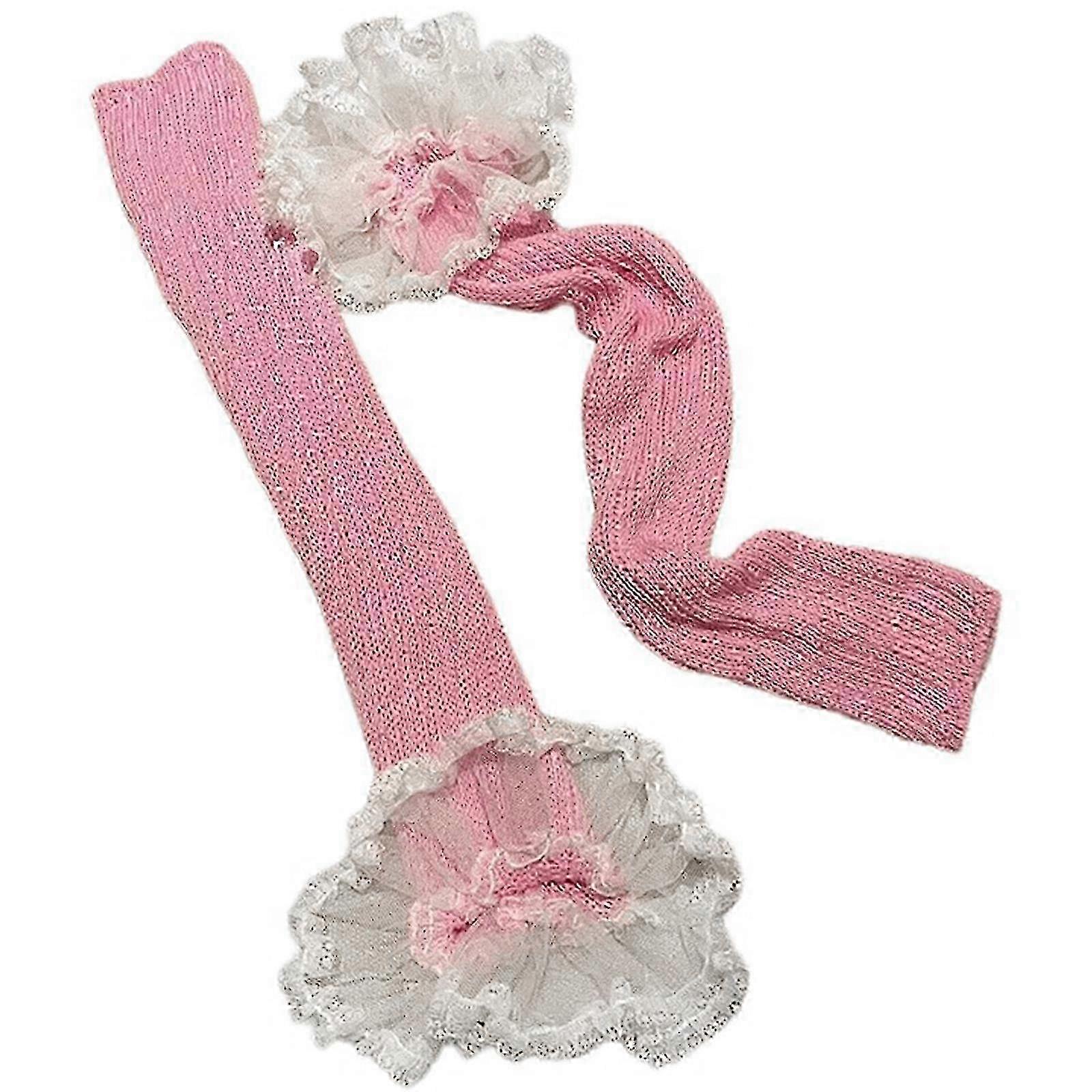 Ribbed Knit Leg Warmers for Korean Women & Girls: Long Calf Socks with Ruffled Mesh & Lace Trim Boot Cuffs. Ideal for Leg Covers & Stockings in White