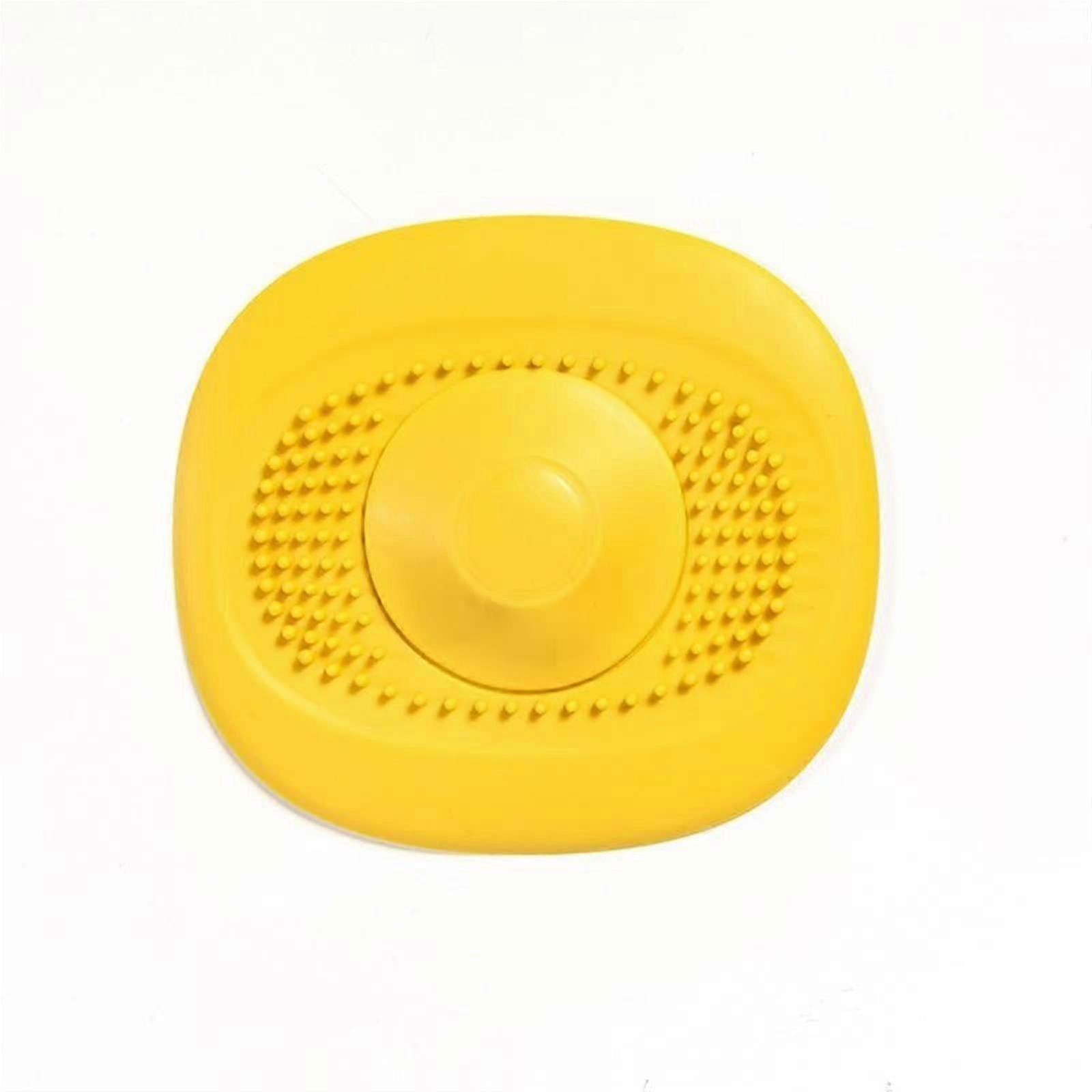 Press Type Drain Strainer for Bathroom: Hair Catchers, Silicon Rubber, Yellow Filter for Bathtub Floor Water Stopper