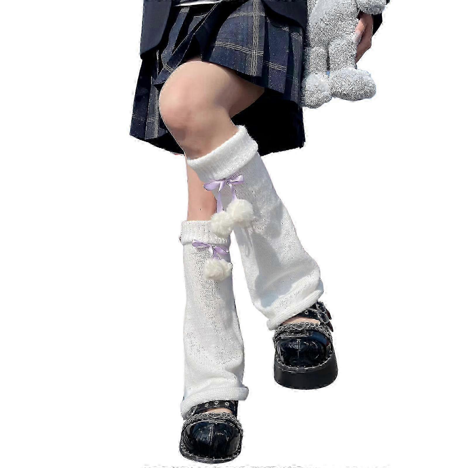 Leg Warmers for Women & Girls: Knitted Bowknot Style, Striped Pattern, Flared Leg Covers, Baggy Wide Fit Long Socks