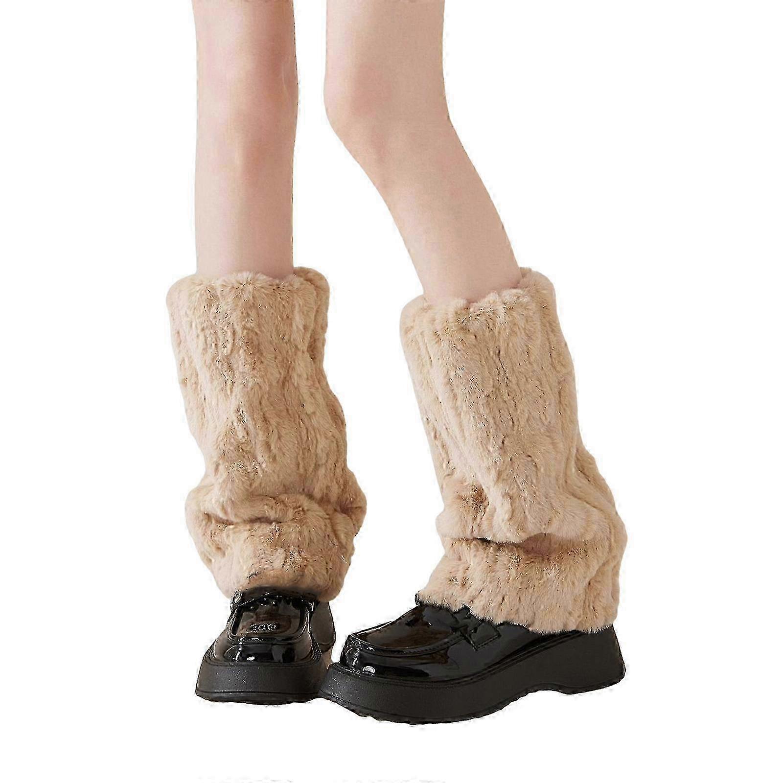 Fuzzy Boot Gaiters with Vintage Solid Color Plush for Women's Elastic Calf Length Socks as Leg Warmers and Cuffs