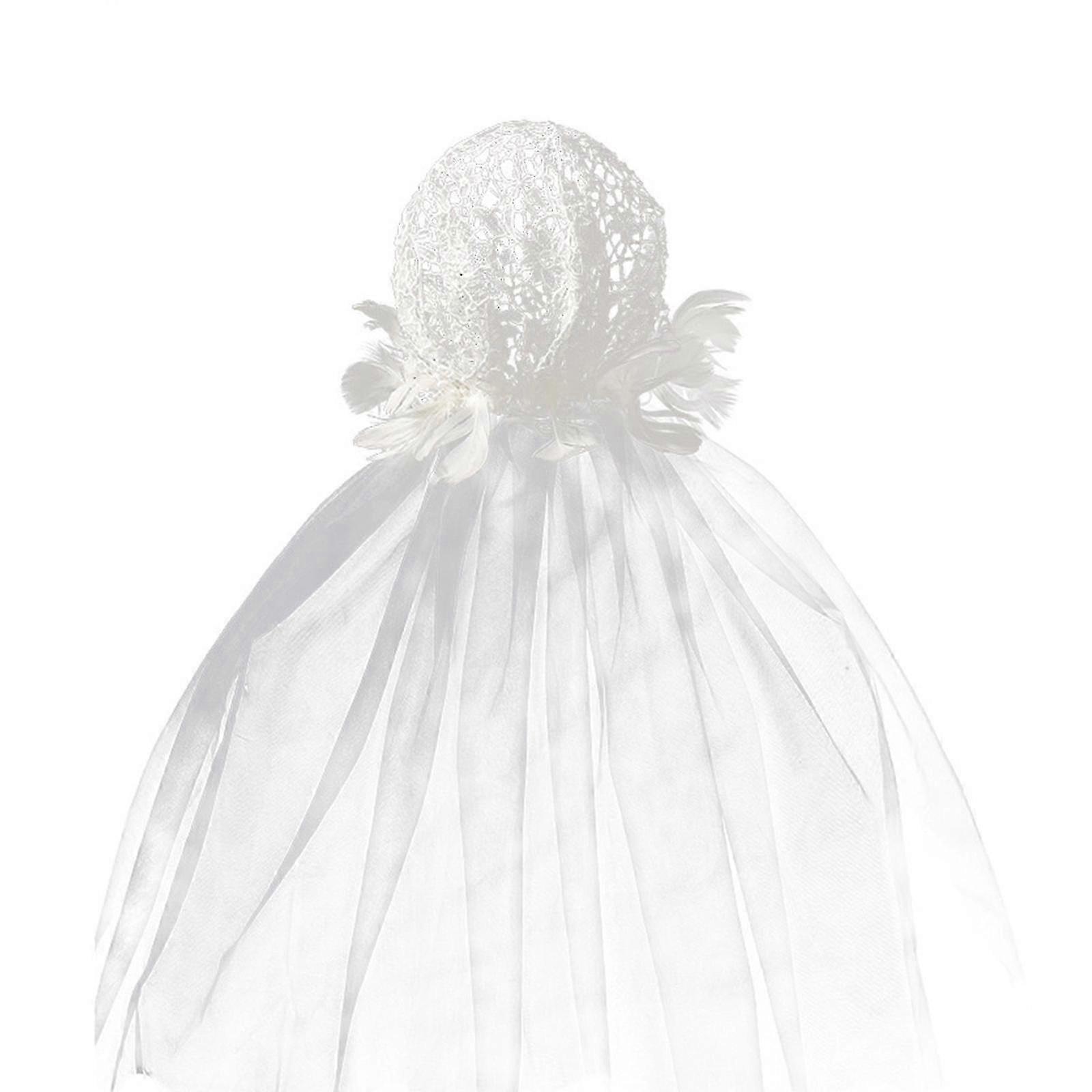 Bridal Veil with Feather Trim & Sheer Headscarf for Bachelorette Party - Elaborate Bridal Hat & Headscarf in White