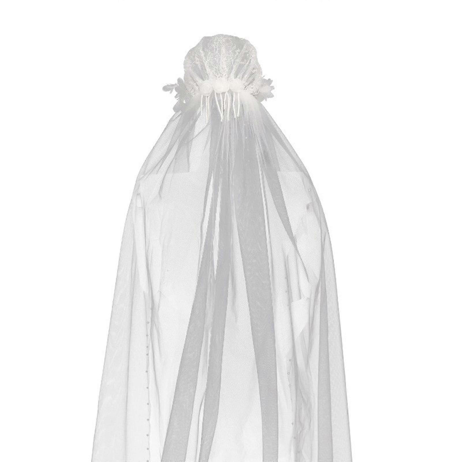 Delicate Flower Applique Veil with Pearl Beaded Carnivals for Women's Wedding Celebration - Ideal for the Bride Veil