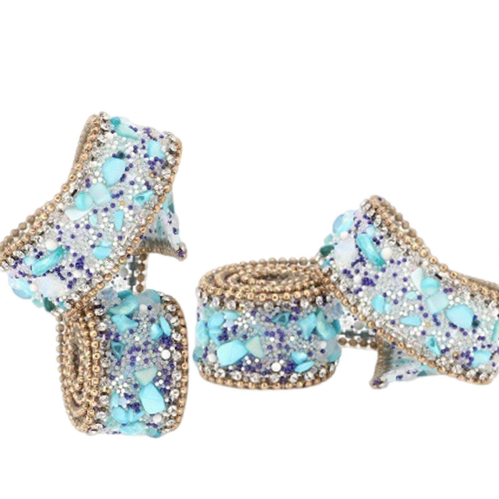2 Rolls Rhinestones Ribbons Rhinestones Chain Iron/Sew On Rhinestones Trim for Dress Decoration Lake blue gravel