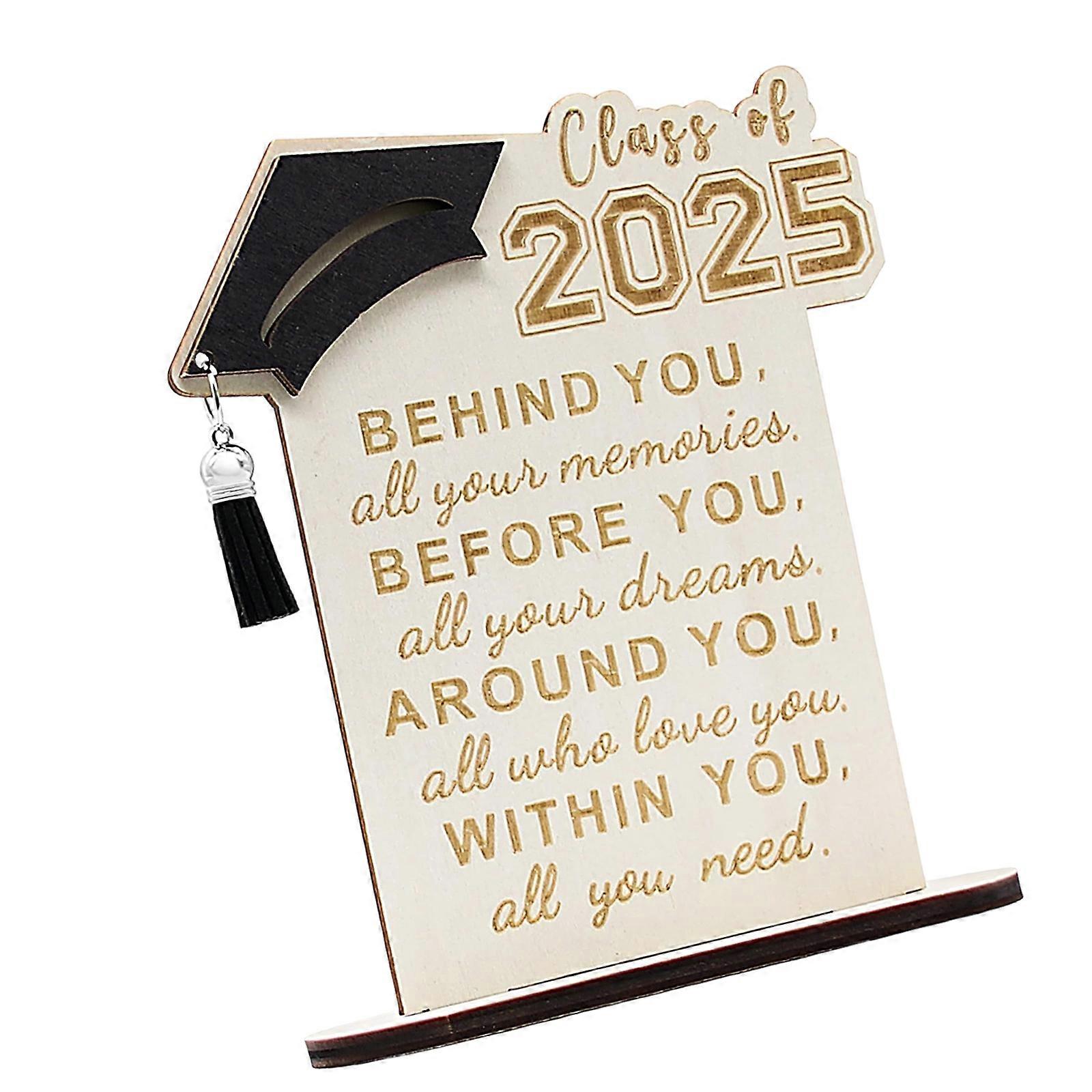 Graduation Wood Sign With Stand Class Of 2025 Inspirational Quote Wood Plaque Desk Ornament for Shelves Desk Decoration Multicolor